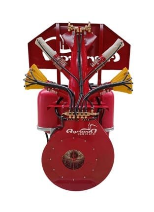 La asistencia de aire para el transporte de las gotas es generada por un grupo centrífugo Ø 500 mm, capaz de un excelente alcance en vertical. El modelo FLOREN PALMA proporciona un caudal de aire de16000 m3/h, siendo idóneo para la mayo-ría de cultivos de palma de aceite.